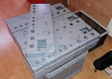 Rückseite: Blende GFK schwarz mit Siebdruck weiß